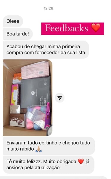 Assim que o pagamento for confirmado, você receberá imediatamente no seu e-mail o acesso completo à lista com todos os fornecedores, e-books e bônus. Tudo digital, rápido e seguro!